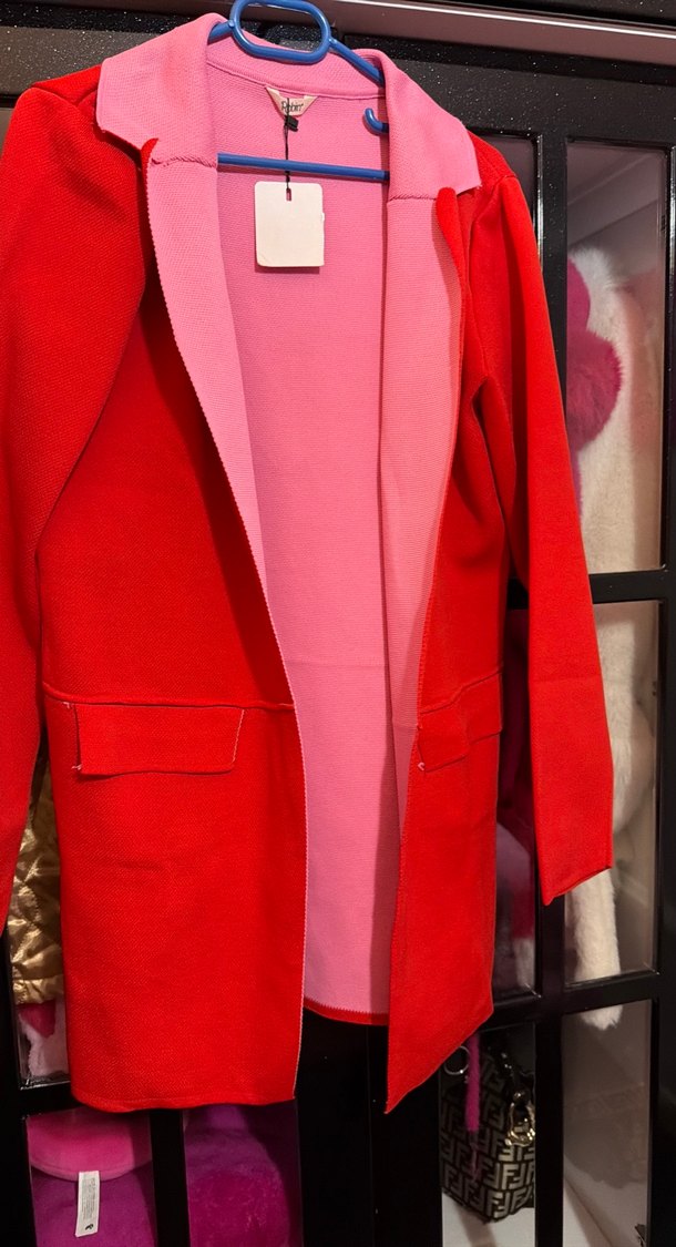 Kadınlar için kırmızı düğmeli uzun palto, yumuşak ve sıcak kumaştan, regular fit ve uzun kollu, günlük kullanıma uygun renkli sokak stiliyle.