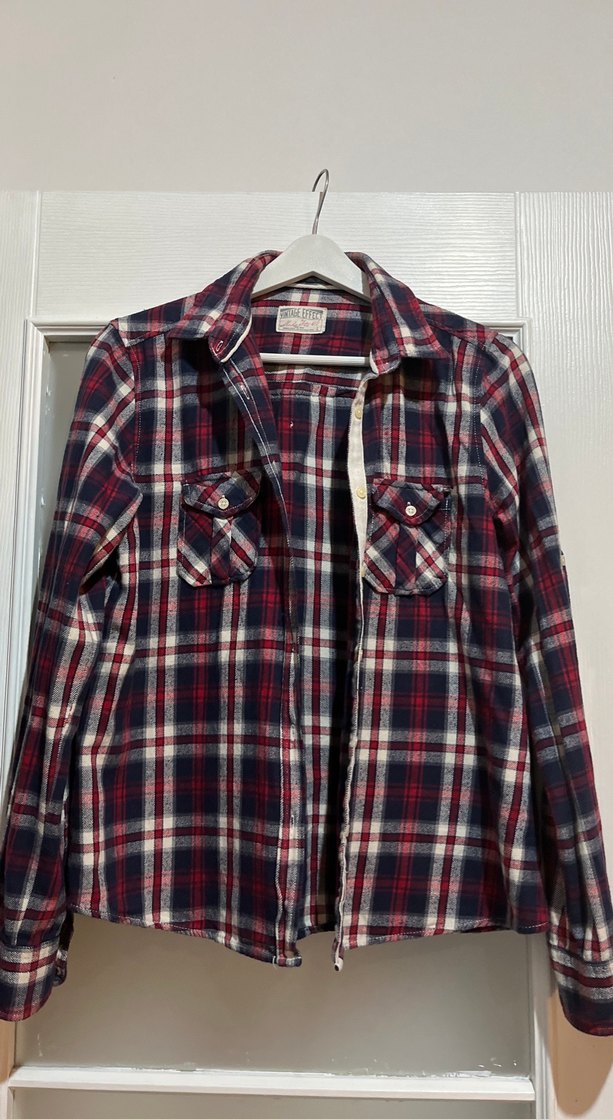 Kadın Kırmızı Ekose Düğmeli Gömlek
