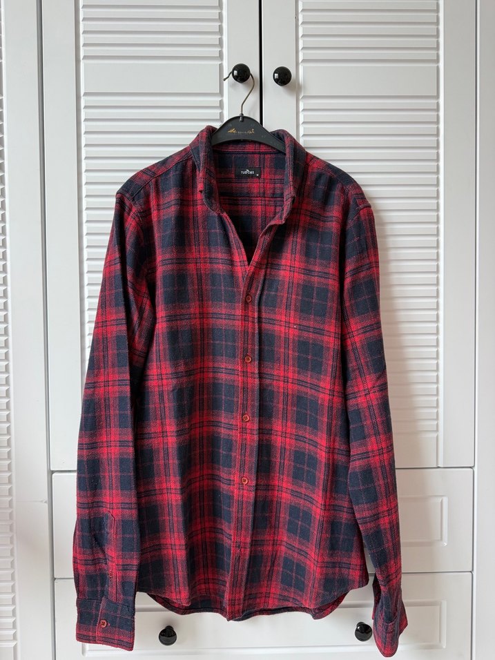 Kadınlar için düğmeli, yakalı ve uzun kollu gömlek. Gevşek kesim, midi boy ve koyu kırmızı ekose desenli, tekstil kumaştan üretilmiştir. Günlük rahat kullanım için uygundur. Tudors
