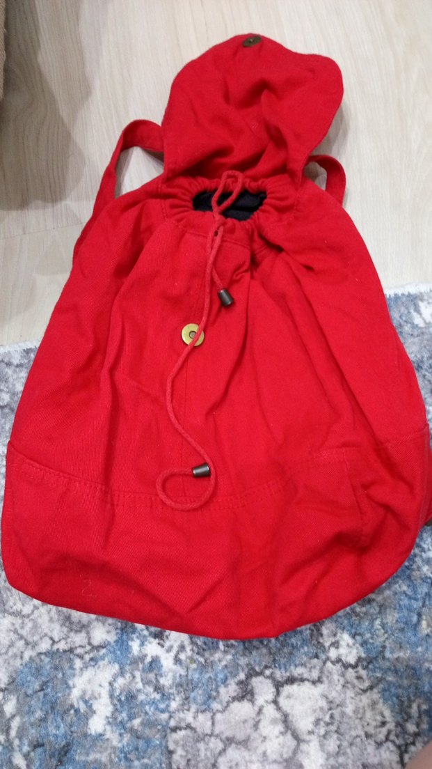 Kadınlar için fermuarlı, yumuşak ve sıcak kumaştan yapılmış, canlı kırmızı renkte günlük kullanıma uygun sırt çantası.