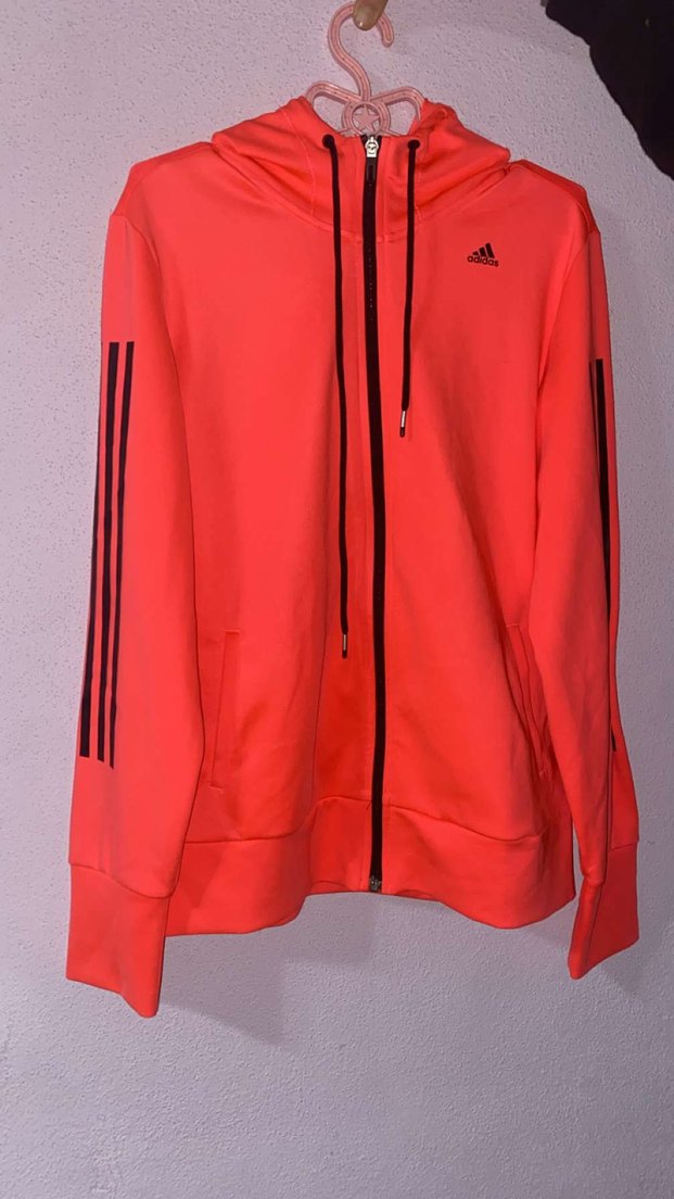 Fermuarlı, uzun kollu, yüksek yakalı pembe adidas hirka