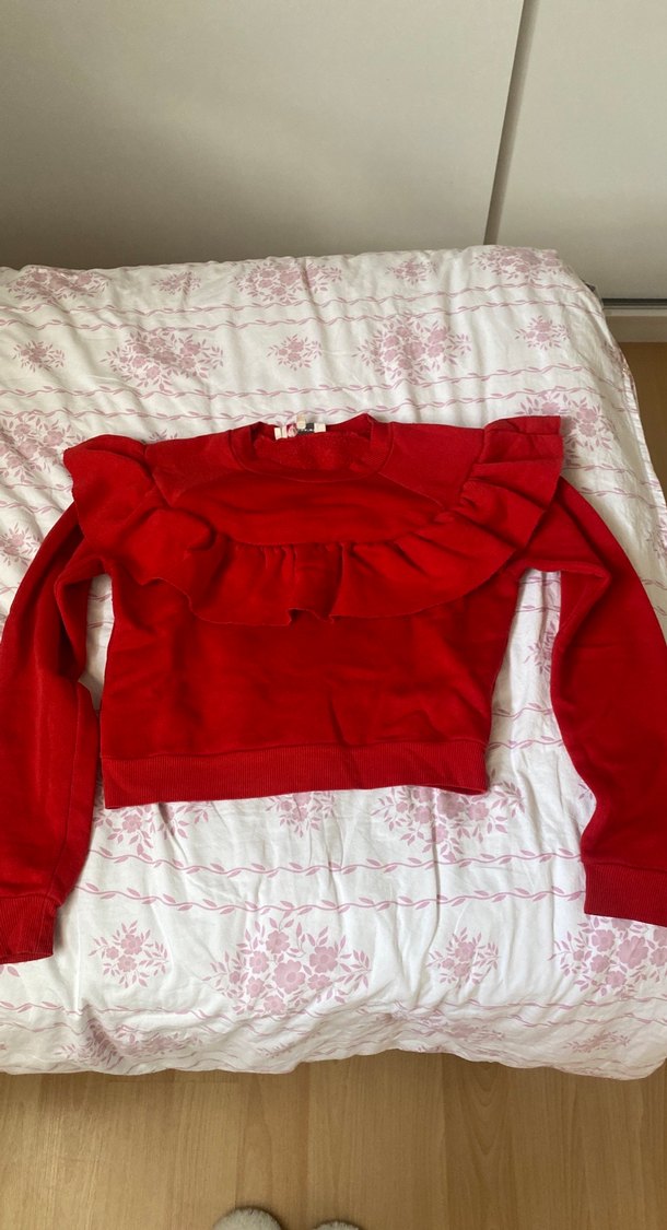 Kadın Kırmızı Fırfırlı Sweatshirt