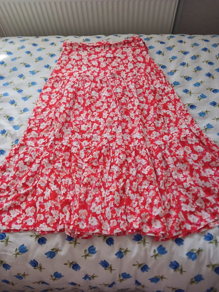 Kadın Kırmızı Fırfırlı Uzun Etek