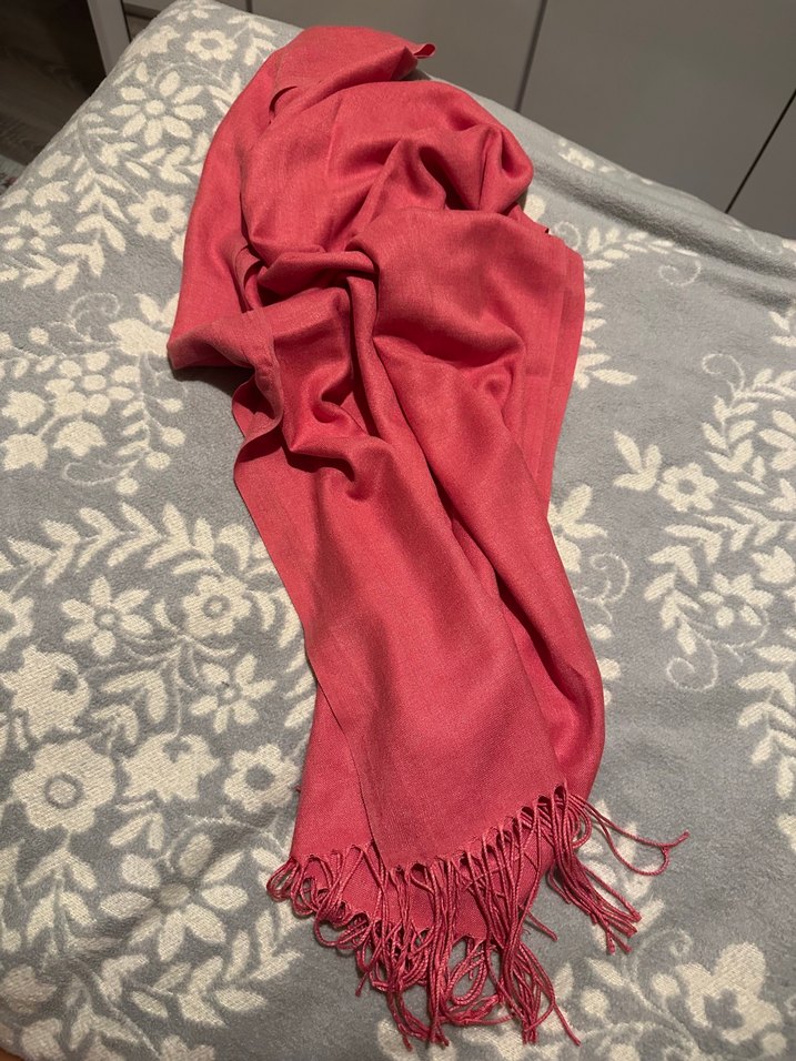 Kadınlar için ipek dokulu, kırmızı renkte, drapeli ve püsküllü şal. Bohem, hippie ve retro tarzlarını yansıtan rahat bir aksesuar. Sıfır ürün hiç kullanılmadı
