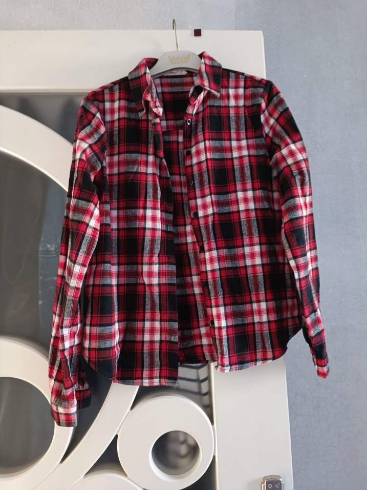 Kadın Kırmızı Kareli ekoseli pamuklu Uzun Kollu Gömlek