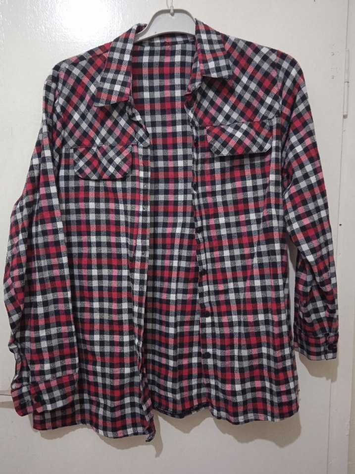 Kadınlar için düğmeli, uzun kollu ve bol kesim gömlek. Çentikli yaka ve midi boyda, kırmızı ve koyu kareli desene sahip sentetik kumaştan üretilmiştir. Günlük sokak stili için uygundur.