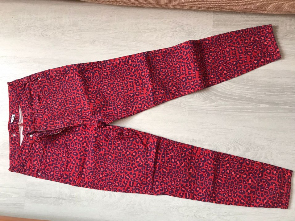 Kadınlar için kırmızı leopar desenli, regular fit ve midi boy kumaş pantolon. Sentetik kumaştan, Velcro detaylı, bohem ve rahat tarzda.