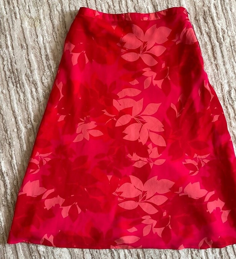 Kadınlar için uzun, bol kesim, parlak kırmızı batik desenli ve drapeli sentetik kumaştan yapılmış bohem etek. artik giymedigim için satıyorum