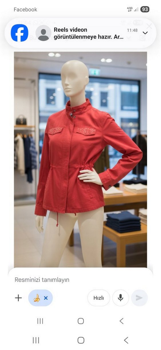 Kadınlar için parlak kırmızı sentetik kumaştan, kısa boy, düğmeli ve uzun kollu mini ceket. Günlük sokak tarzına uygundur.