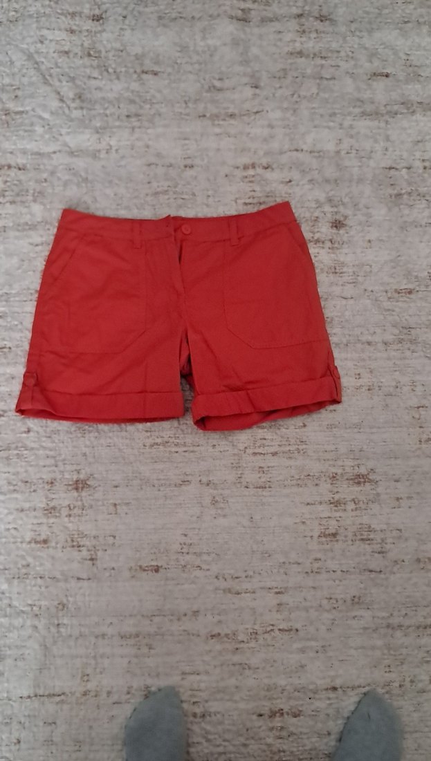Kadın kırmızı mini pamuk şort, rahat kesimi ve yumuşak kumaşıyla gündelik dış mekan kullanımı için uygundur. Rahat ve şık bir görünüm sunar.