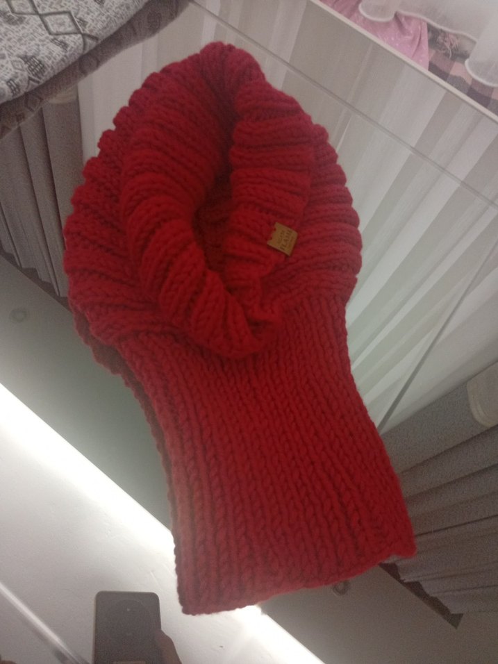 Örgü kırmızı bere, sıcak ve renkli dokusuyla karşı kültür tarzına uygun. Moda öncülerine yönelik şık ve rahat bir seçim.