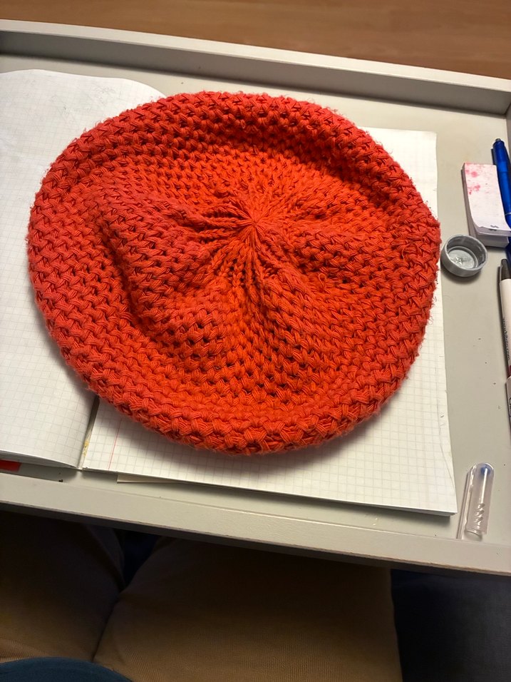 Yumuşak örgüden yapılmış, kırmızı renkli kadın bere. Rahat ve renkli tasarımıyla sade, karşı kültür stiline uygun.  kullanılmış temiz belirsiz 1.02 yerinde tüylenme var