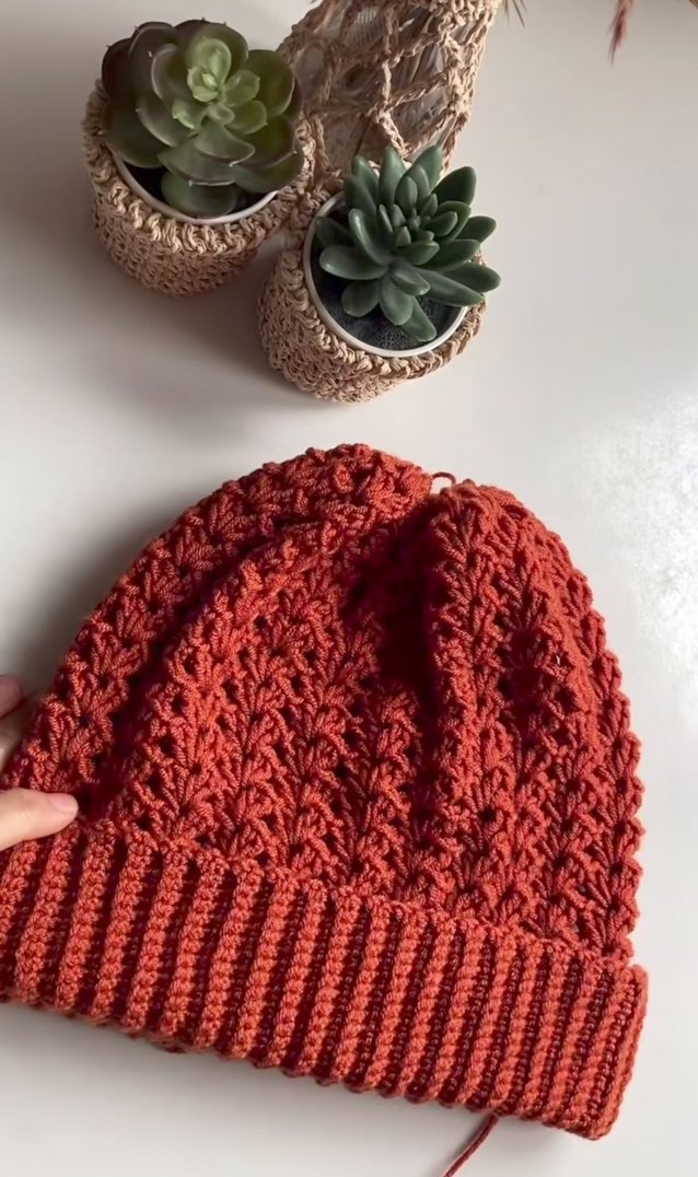 Renkli kırmızı tonda, örgü dokulu, bohem tarzda kadın bere.