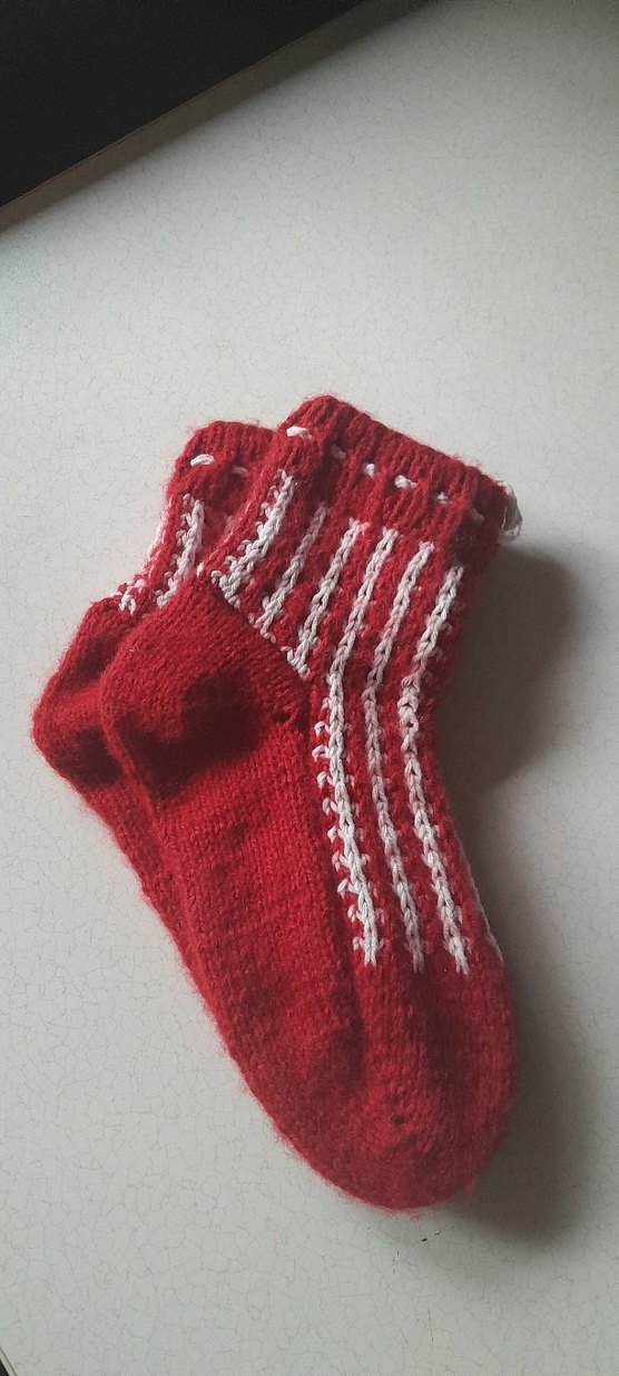 kadın kırmızı örgü çorap, 36-38 numara rahat giyer. yumuşak dokulu ve beyaz çizgili detaylara sahip. Renkli ve rahat kullanım sağlar.