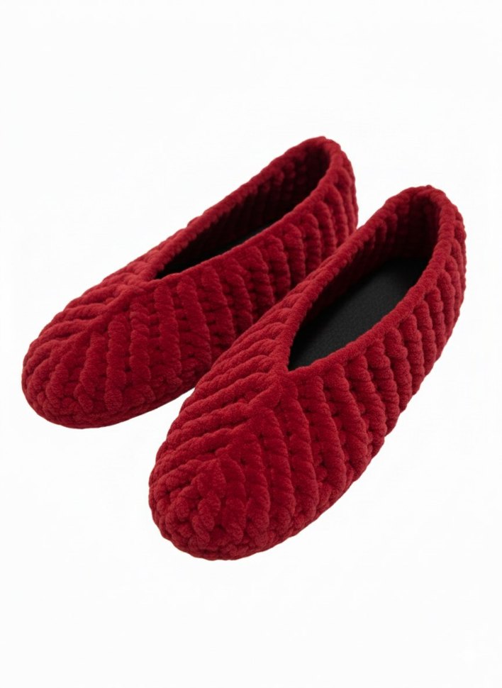 Kadın Kırmızı Örgü Ev Terliği