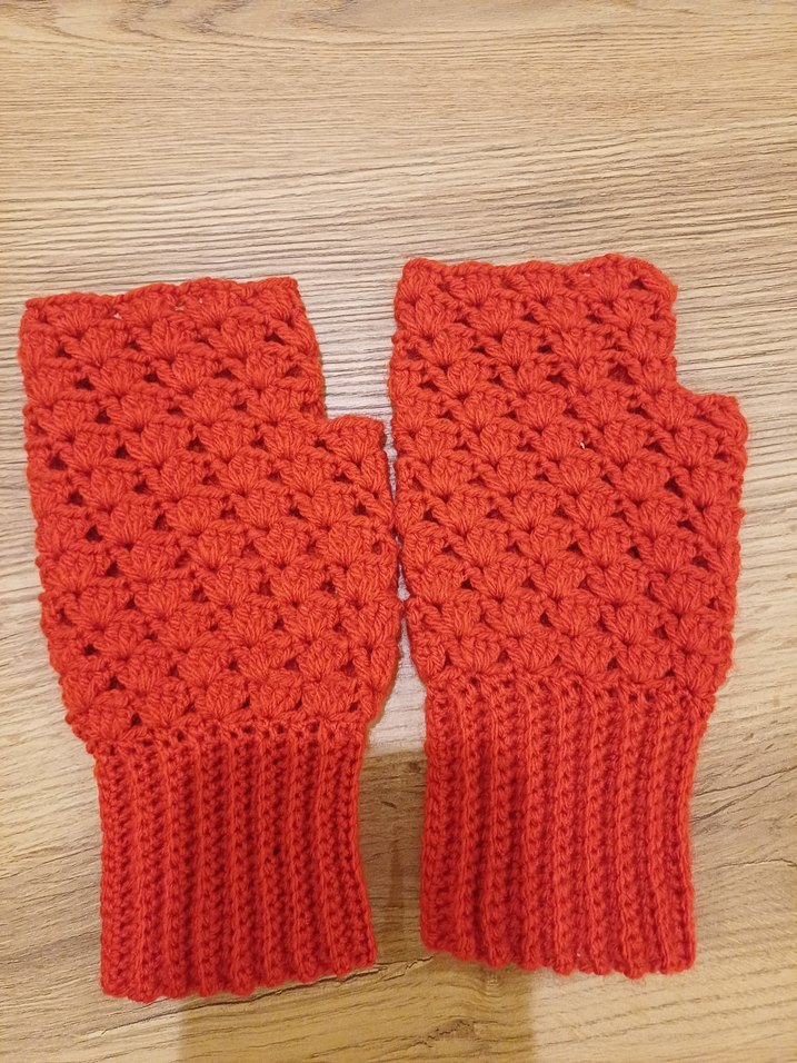 Kadınlar için kırmızı, örgü yapılmış, parmaksız ve renkli bohem tarzda rahat eldivenler. istediğiniz renkte sipariş verebilirsiniz
