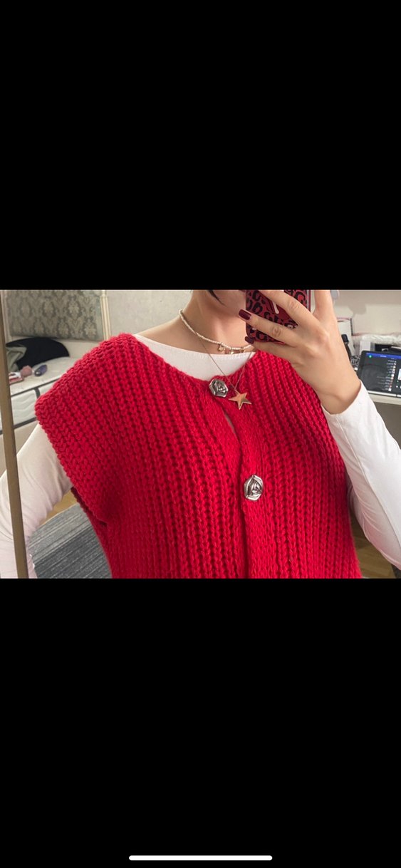Kadın Kırmızı Örgü Süveter .