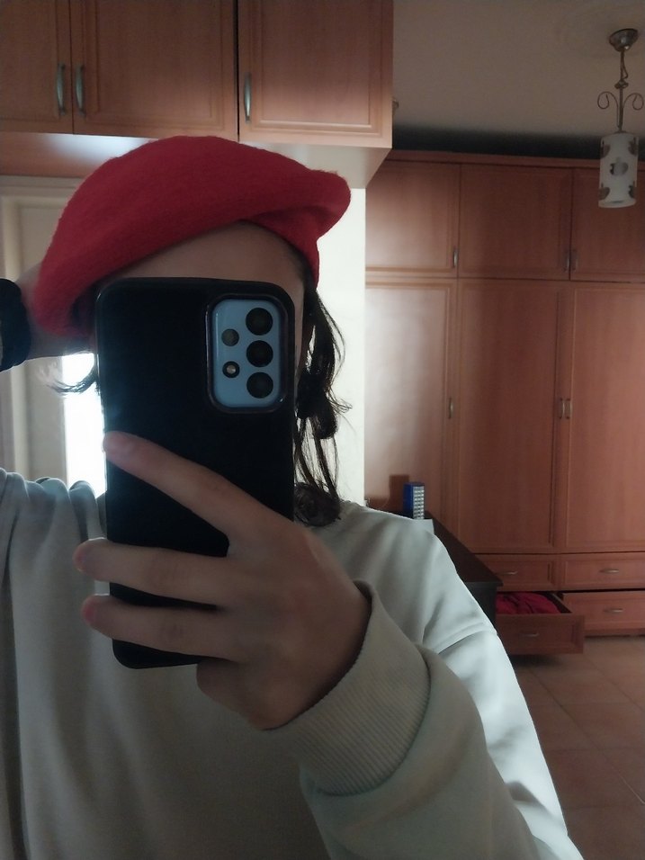 Kadınlar için yumuşak yünden örülmüş, canlı kırmızı renkte, çağdaş ve rahat bir bere. Moda tutkunları için ideal.