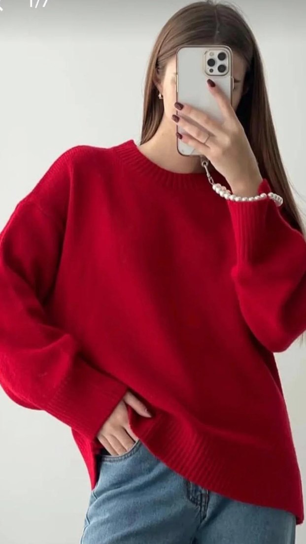 Kadın Kırmızı Oversize Triko Kazak