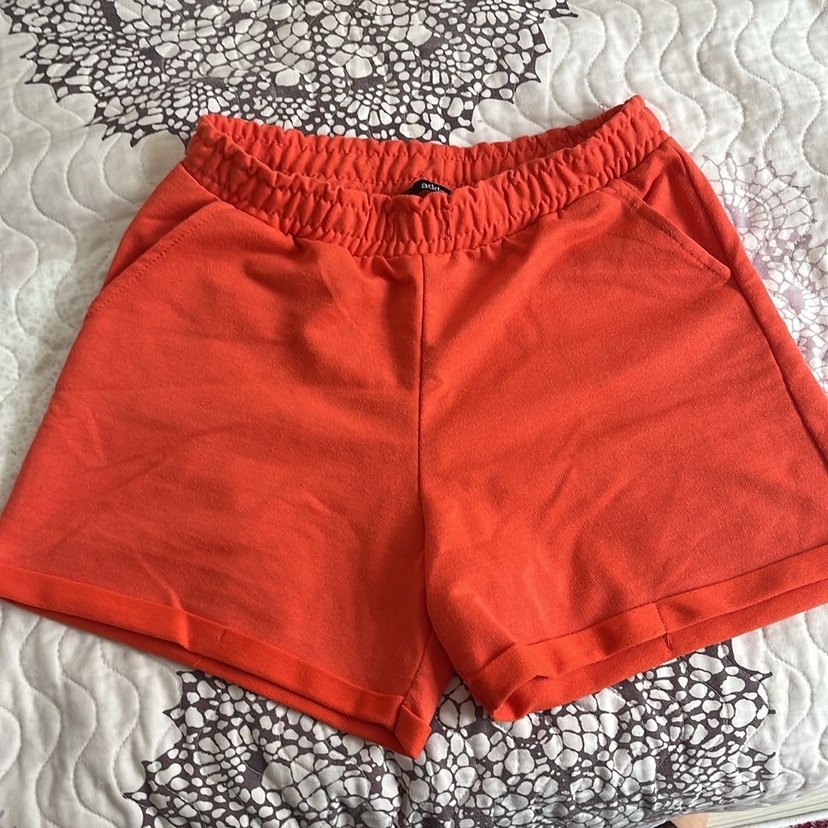 Kadın kırmızı pamuk mini şort, bol kesim ve rahat kumaşıyla günlük kullanım için uygundur. Sokak stili ve athleisure tarzına uyum sağlar. kullanilmis biraz kumasi tiffiklenmis