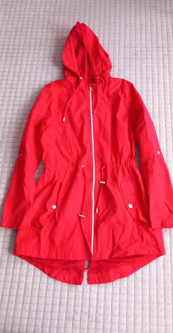 Kadın Kırmızı Parlak Midi Yağmurluk Kapüşonlu
