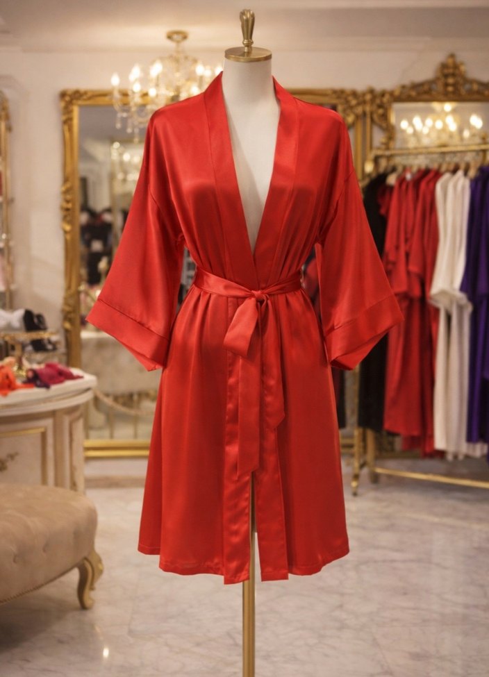 Kadın Kırmızı Parlak Uzun Modern Klasik Sabahlık
