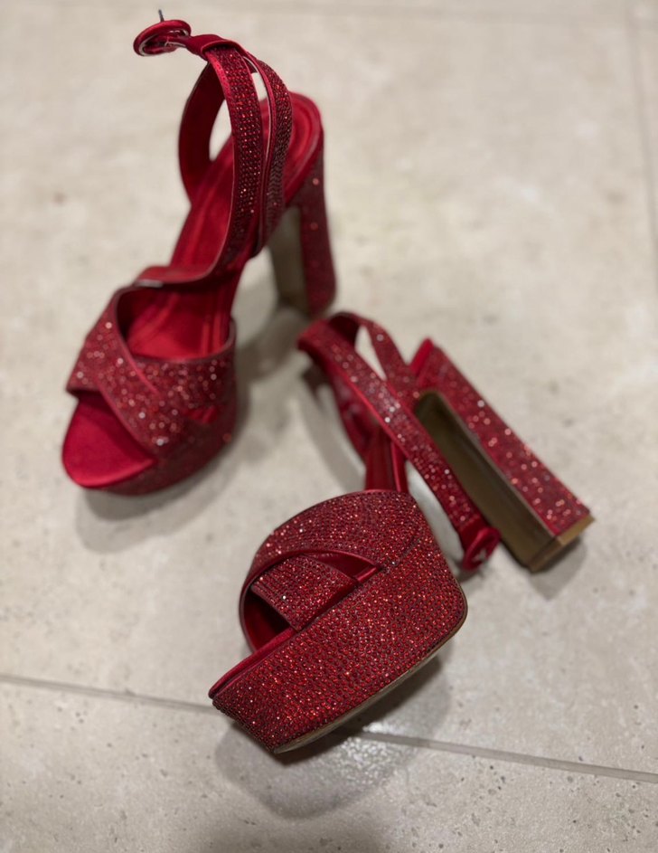 Kadın Kırmızı Payetli Platform Topuklu Abiye Ayakkabı