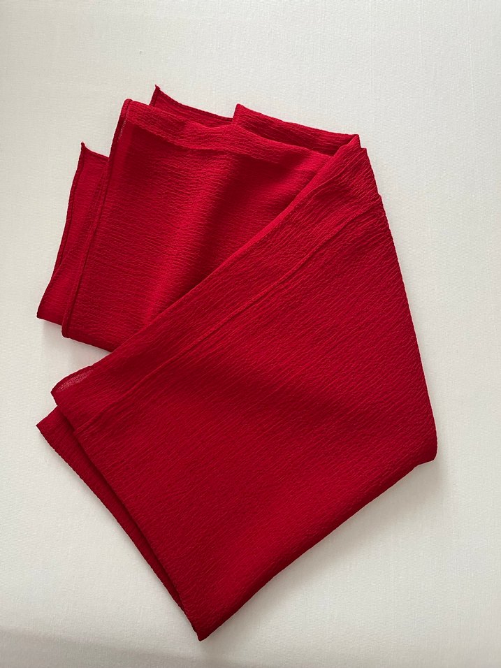 Kadınlar için kırmızı, pilili keten kumaştan yapılmış sade ama renkli minimalist tarzda bir şal.