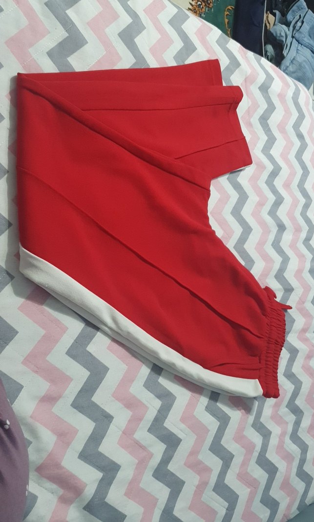 Kadınlar için kırmızı pilili, normal kesim ve midi boyda spor pantolon. Sentetik kumaştan üretilmiş, renkli ve trend bir görünüm sunar. ♀️