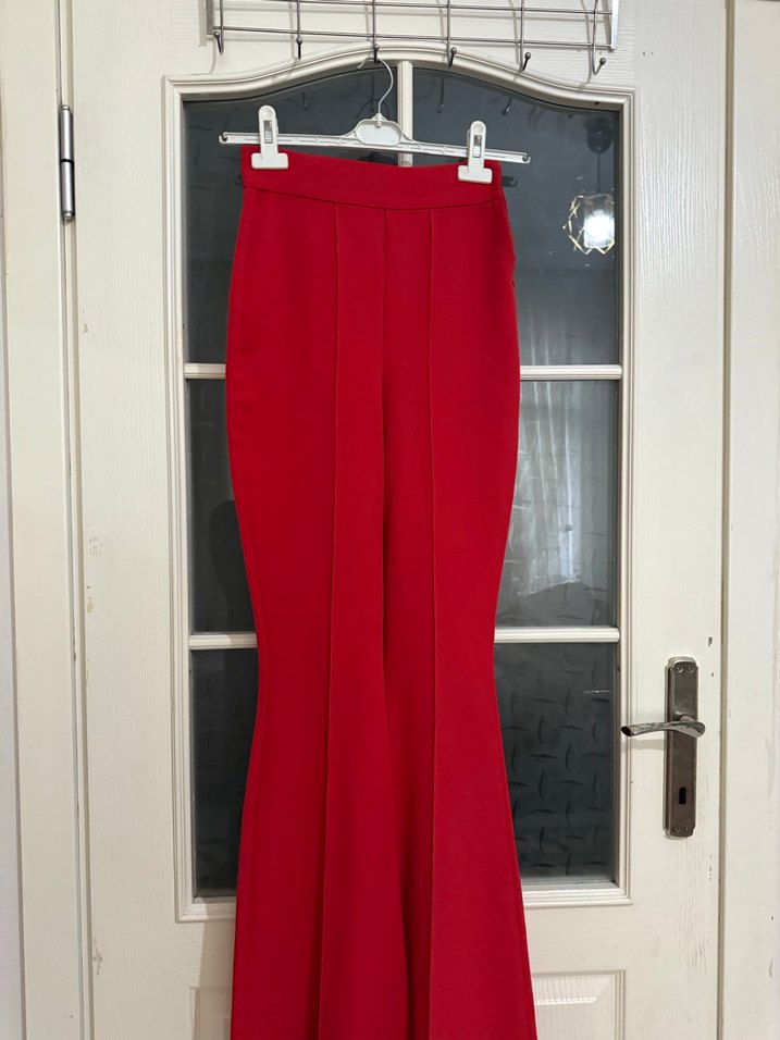 Kadın Kırmızı Piliseli Kumaş Pantolon