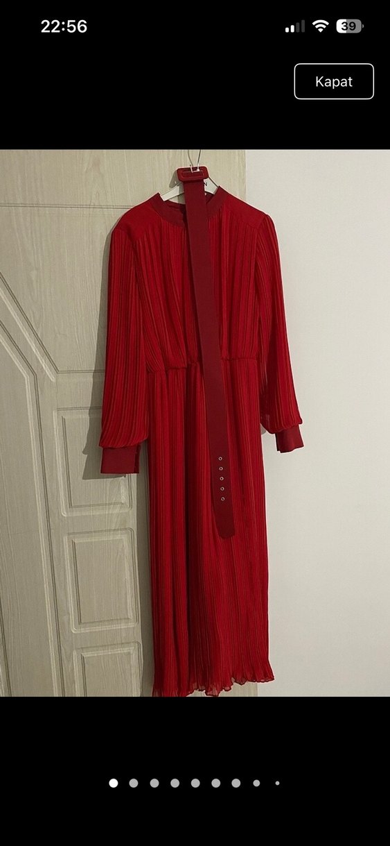 Kadın Kırmızı Piliseli Uzun Elbise