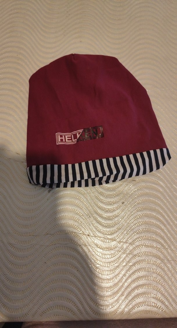 Kadınlar için koyu kırmızı polar kumaştan yapılmış, çizgili katlamalı kenarı ve Velcro detaylı bere. Sokak modasına uygun, rahat bir tarz sunar.