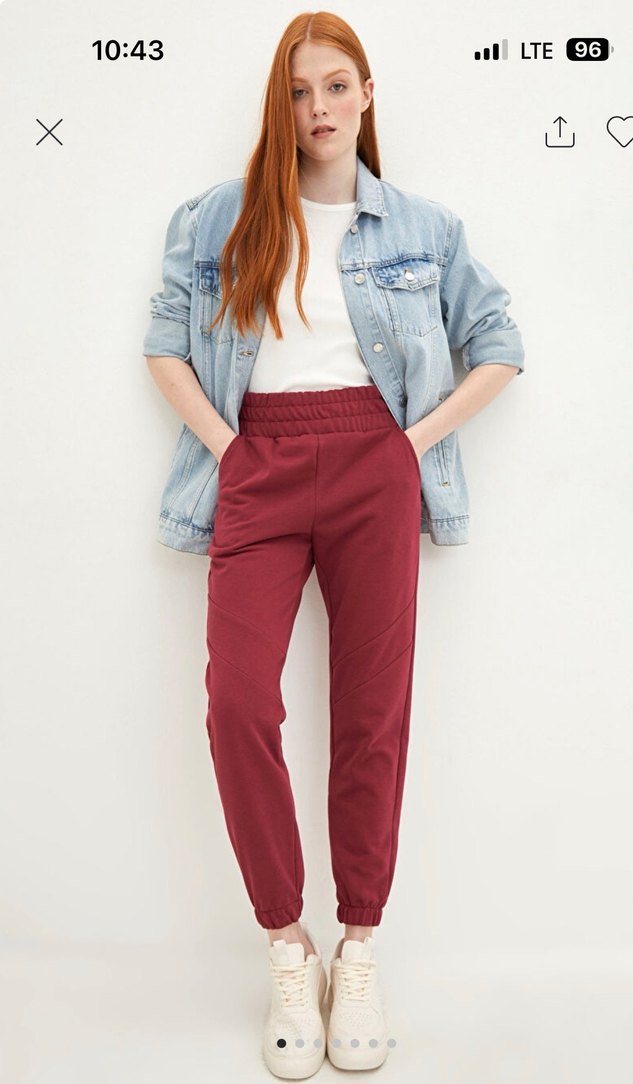 Kadınlar için rahat kesim ve normal boyda, yumuşak denim kumaştan kırmızı jogger pantolon. Günlük kullanım için zahmetsiz şıklık sunar.