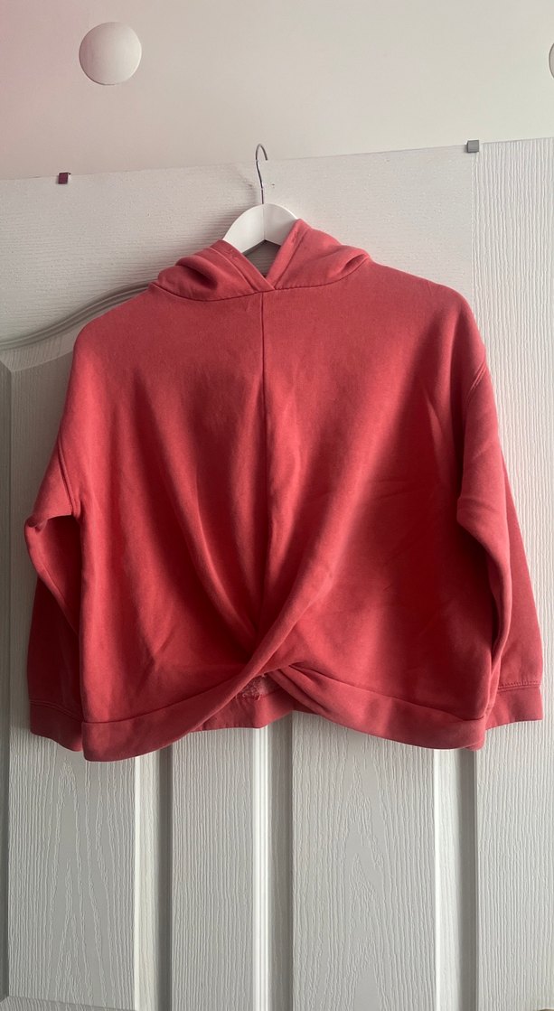 Kırmızı renkli, uzun kollu ve yuvarlak yakalı kadın sweatshirtü. Rahat kesim ve yumuşak, sıcak kumaştan üretilmiş. Önden drapeli detaylı, günlük kullanım için uygun.