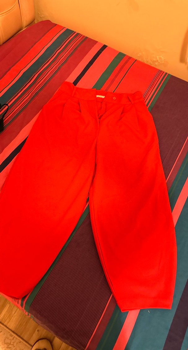 Kadın kırmızı kumaş pantolon, regular fit ve midi boyda, yumuşak ve sıcak malzemeden üretilmiştir. Sokak stili için zahmetsiz şıklık sunar, açık hava kullanımı için uygundur.