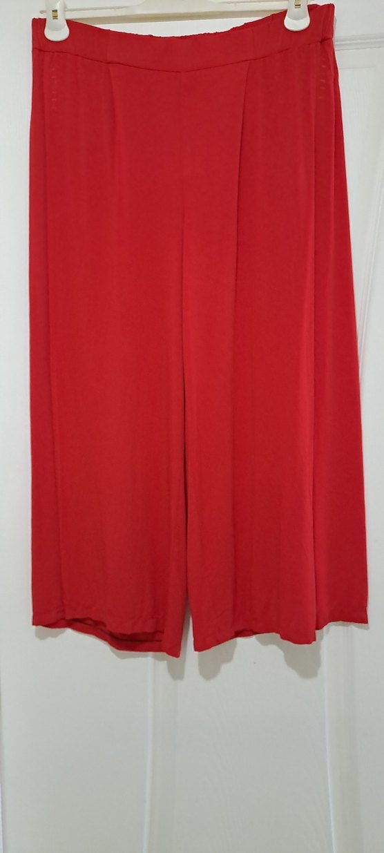 Kadınlar için kırmızı, pamuk kumaştan, salaş kesim ve gizli yırtmac detayiyla uzun pantolon. Minimalist tarzda, romantik akşamlar için uygundur. ❤️