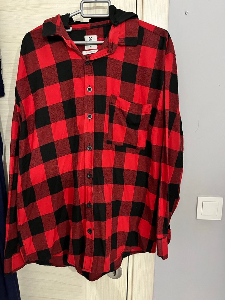 Kadınlar için kırmızı siyah kareli, uzun kollu, düğmeli ve yakalı pamuk gömlek. Rahat kesim ve normal boyda, günlük kullanıma uygun.