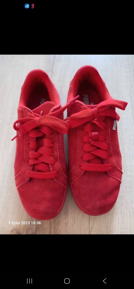Kadın Kırmızı Süet Puma Spor Ayakkabı Velcro