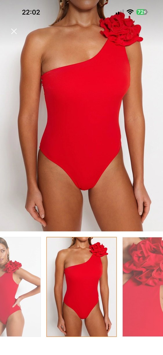 Bu kadın mayo, iddialı kırmızı renkte, tek omuz askılı ve vücudu saran kesime sahip. Düz ve modern tasarımıyla plajda zahmetsiz şıklık sunar.