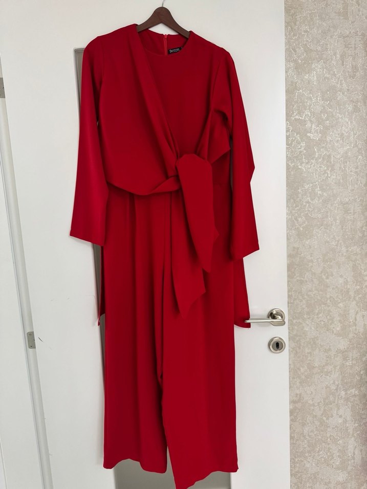 Kadın Kırmızı Uzun Drapeli tulum