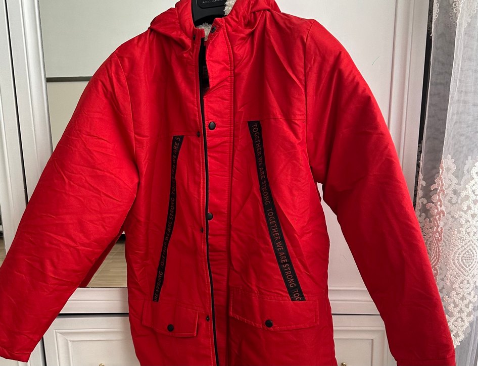 Kadın Kırmızı Uzun Düğmeli Streetwear Mont Bedeni 13 14 Yaştır.