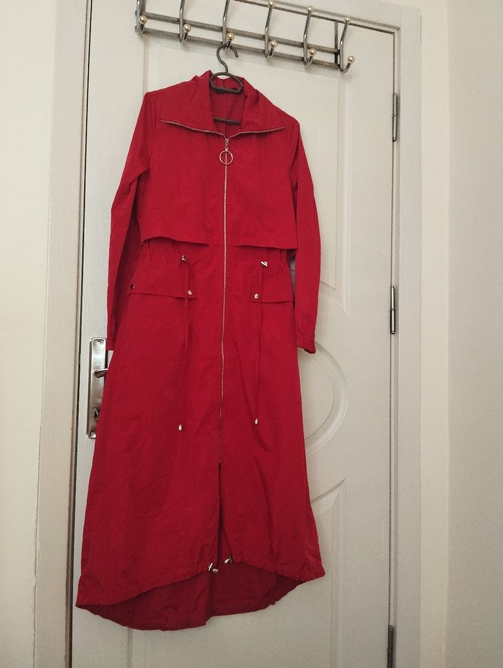 Kadın Kırmızı Uzun Fermuarlı pardesü