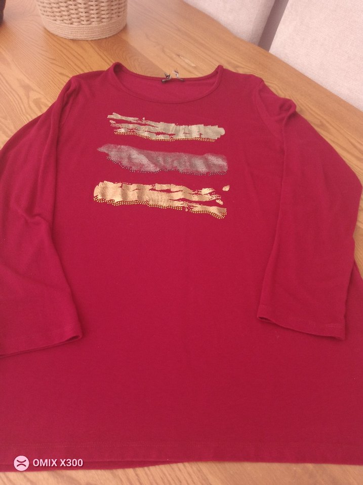 Kadın Kırmızı Uzun Kollu Baskılı Tişört