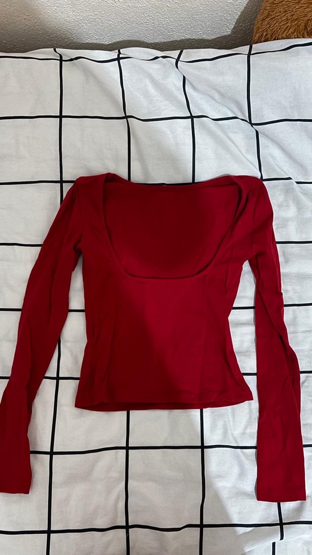 Kadınlar için kırmızı, uzun kollu, tek renk, tek düğmeli, normal boyda, minimalist tarzda, sokak modasına uygun, vücuda oturan bluz.