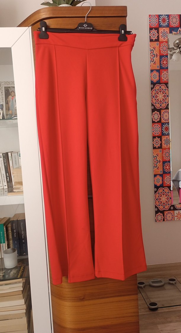 Kadın kırmızı uzun kumaş pantolon, sentetik kumaştan yapılmıştır. ✨