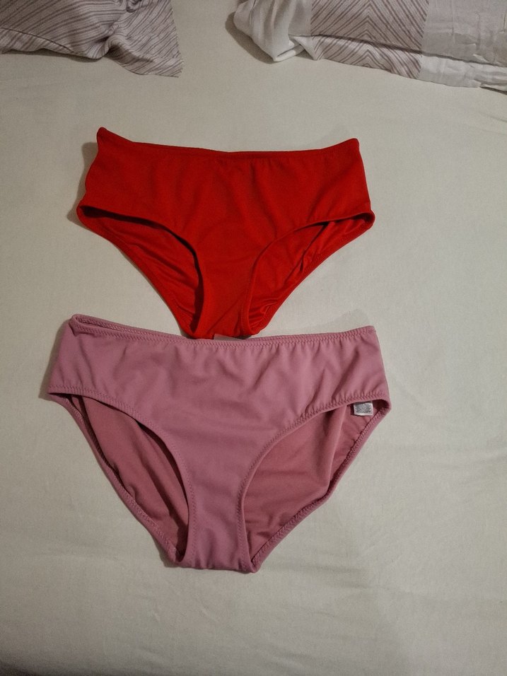 Canlı kırmızı ve pastel pembe renklerde, ince askılı ve vücuda oturan bikini altları, günlük kullanım için rahat ve şık.