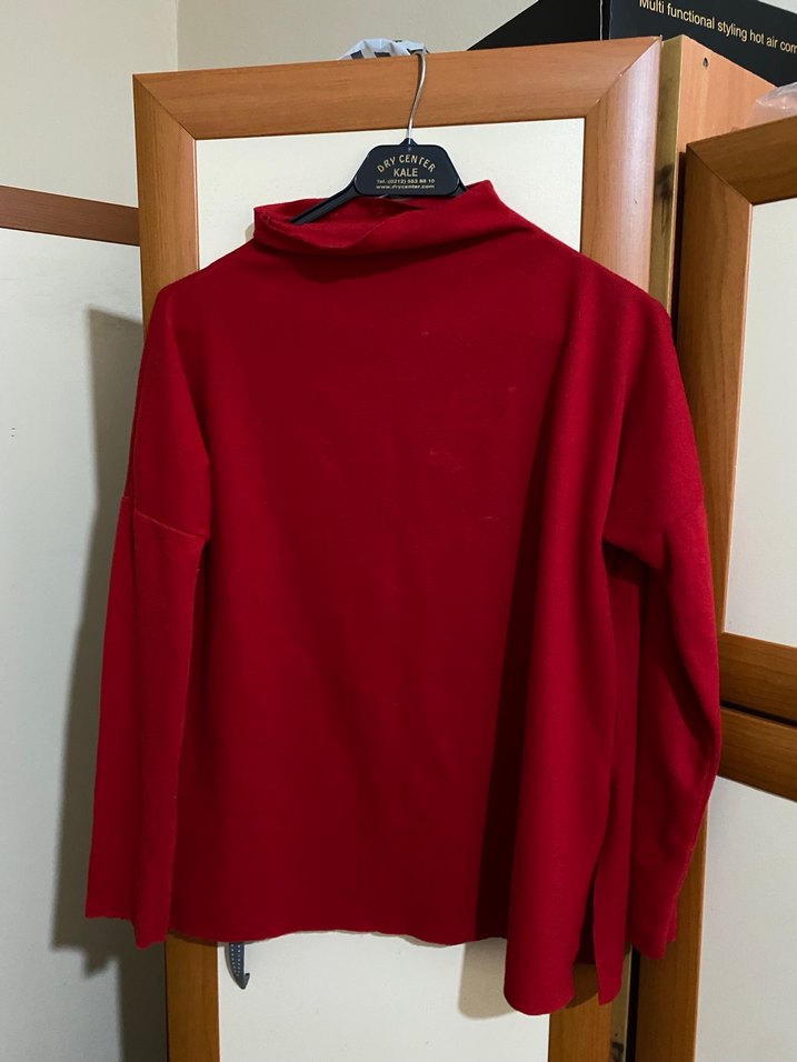 Kadın Kırmızı Yüksek Yakalı Salaş Triko