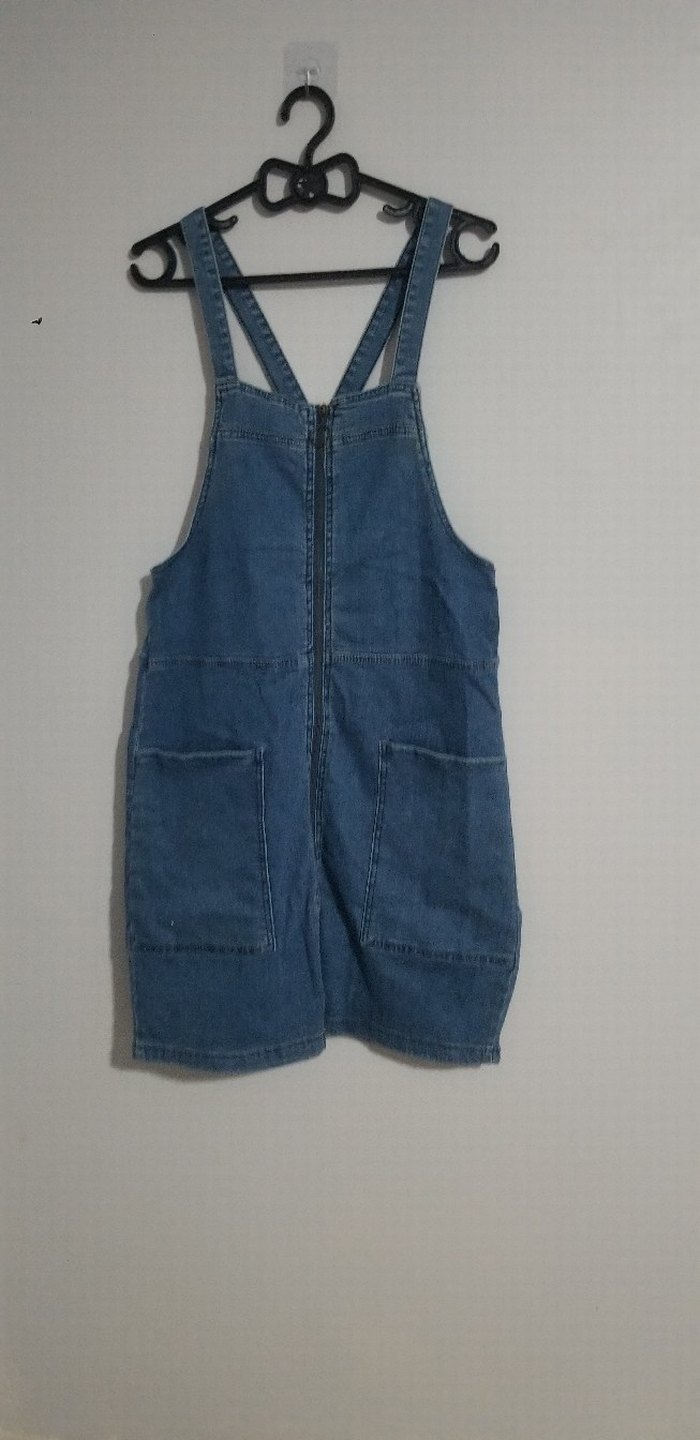 Önden fermuarlı, büyük cepli, kolsuz ve vücuda oturan denim salopet. Sokak stili için uygun. sadece 1 kez bayramda giyildi yeniden farkı yok 40 42 44 uygundur biraz esnektir