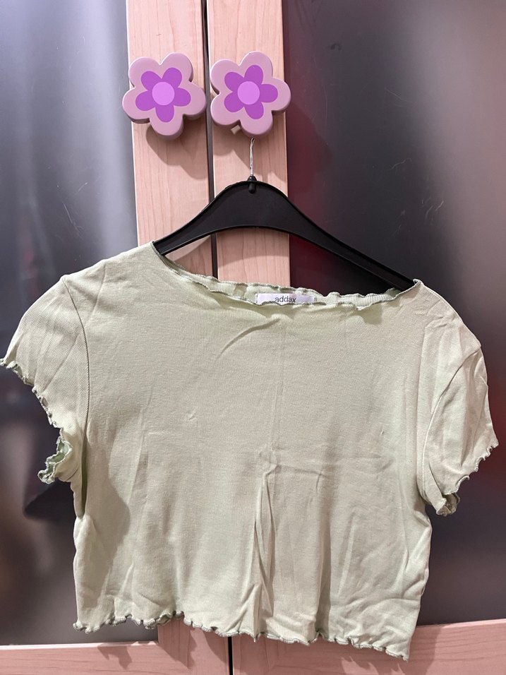 Kadın Kısa Kollu Fırfırlı Keten Crop Tişört