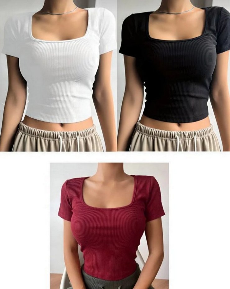 Pamuk kumaştan, kısa kollu ve kare yakalı kadın crop top. Minimalist ve şık tasarımıyla günlük ve sokak stiline uygun, fitted kesim. 3 ü bir arada.